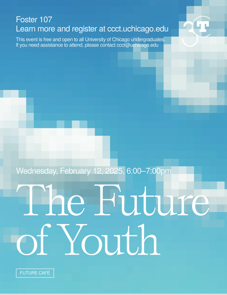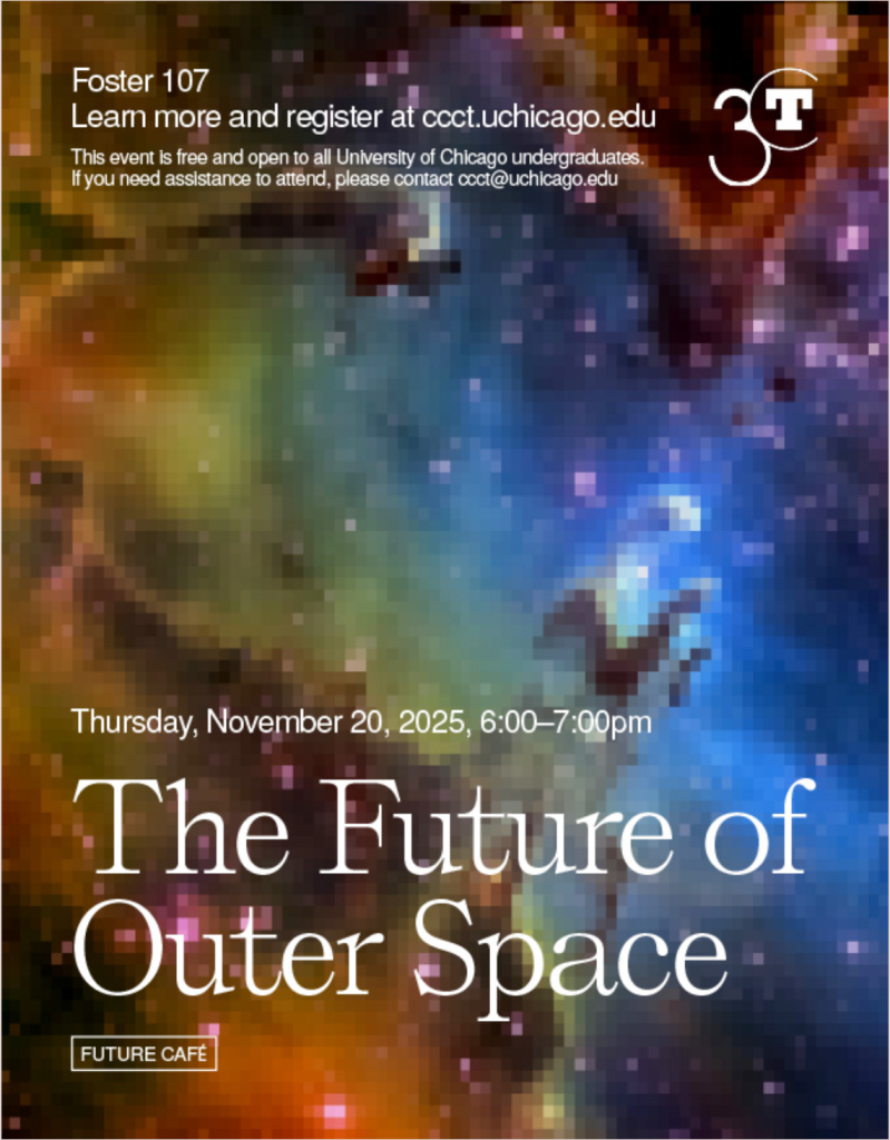 Each meeting has a general topic to shape discussion (The future of “X”). Nothing is off-limits. There are only three principles: no bosses, no pessimism, and no presentism. The challenge is to think 100+ years into the future. Cafés can be monthly or one-time pop-ups. And can happen anywhere: on campus, a brick-and-mortar café, a workplace, or virtual platform.